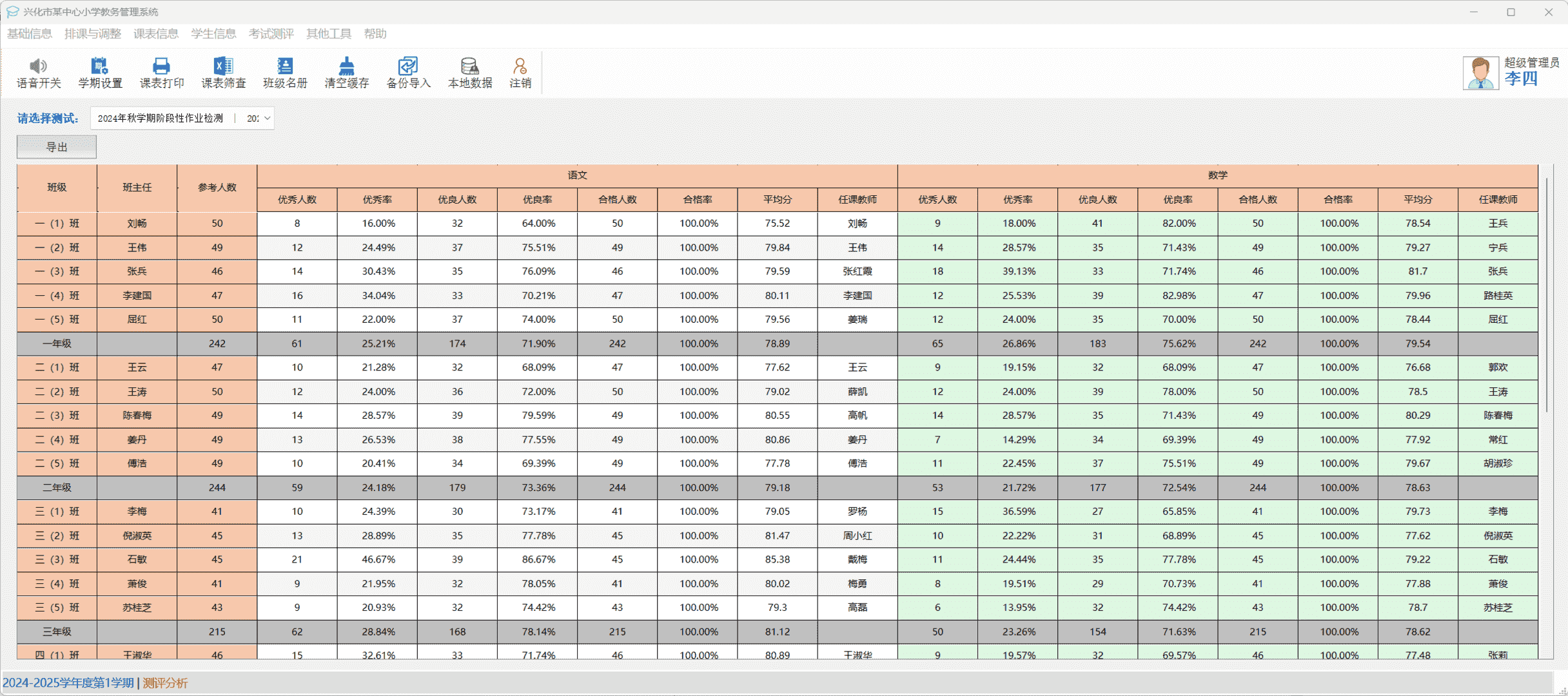 3.选择测试年级或班级。